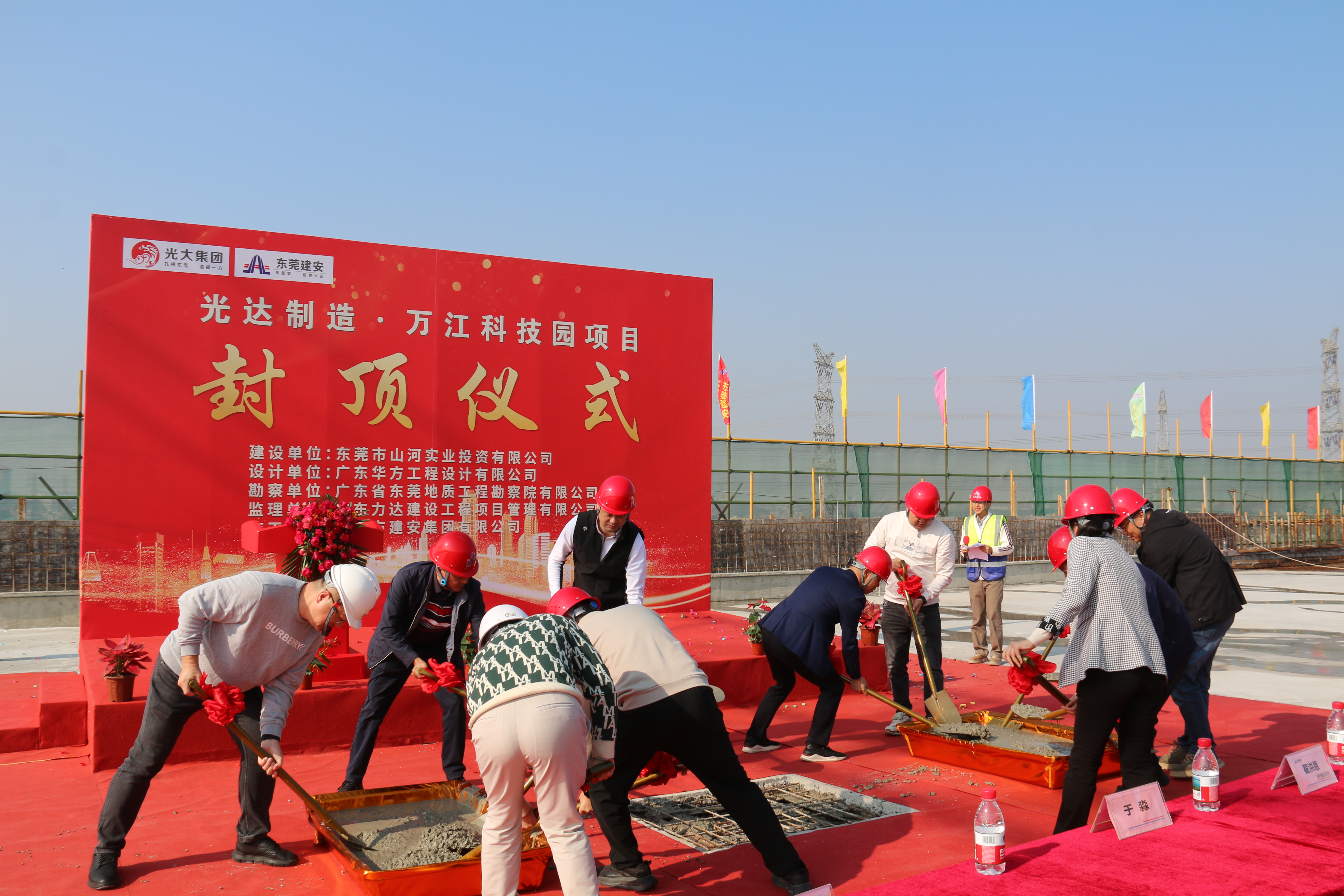 广东光大集团副总裁兼建安集团总经理翟洪恩、光大集团泛地产中心总经理蒋联徐、产业集团副总经理胡国刚等领导及嘉宾共同执铲,为这座总投资1.2亿元、建筑面积5.9万平方米的园区封顶画上圆满句号。